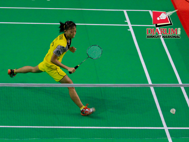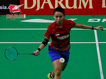 Ana Rovita (Djarum Kudus) mengembalikan serve ke arah Febby Angguni (Djarum Kudus).