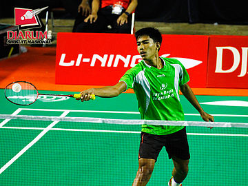 Yohanes Rambitan (JR Enkei) saat meminta pergantian shuttlecock