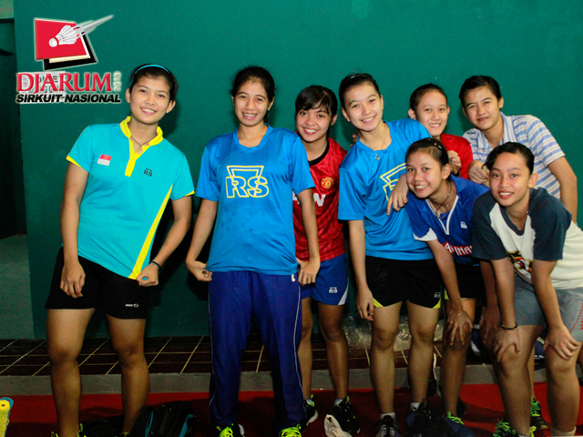 Sejumlah pemain Mutiara Bandung berpose bersama sebelum memulai latihan di GOR Ari Lasut, Manado.