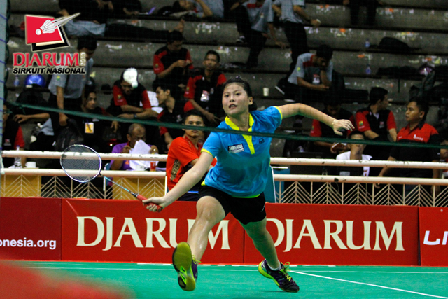 Febby Angguni (PB Djarum) menyambar pengembalian dari Jessica Muljati (Ananda).