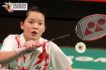 Komala Dewi (USM Semarang) tersenyum ditengah permainannya.