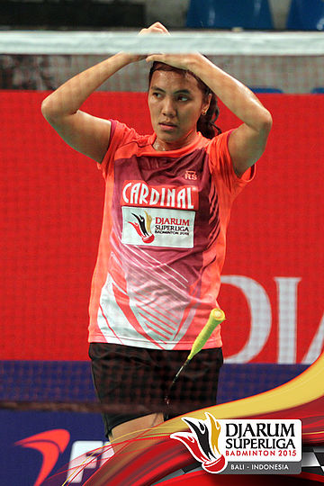 Gebby Ristiyani (Mutiara Cardinal) saat menunggu giliran untuk berlatih.