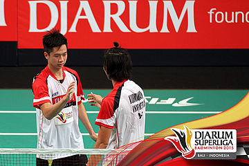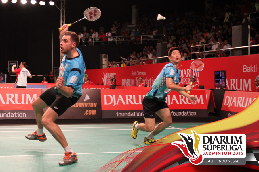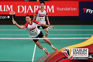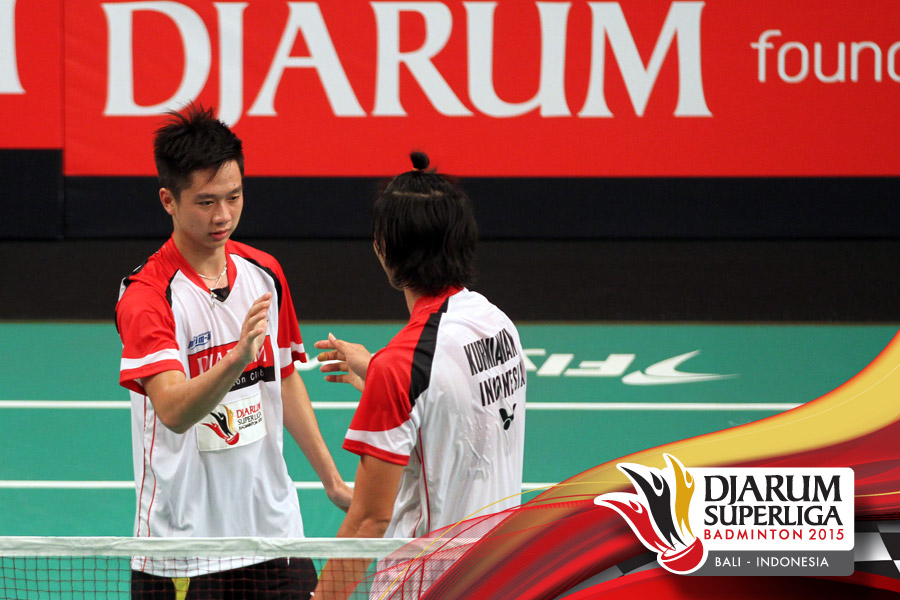 Kekompakan Fran Kurniawan dan Kevin Sanjaya (Djarum Kudus) di lapangan.