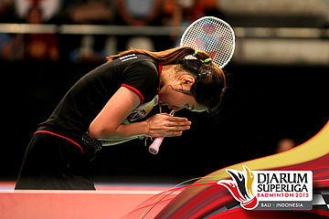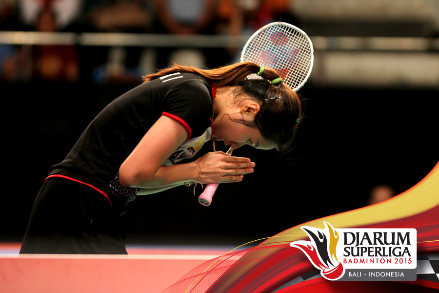 Ratchanok Intanon (Jaya Raya) saat memberikan apresiasi kepada seluruh penonton di GOR Lila Bhuana yang telah mendukungnya.