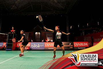Kekompakan Pia Zebadiah/Rizki Amelia (Jaya Raya) dilapangan pertandingan.