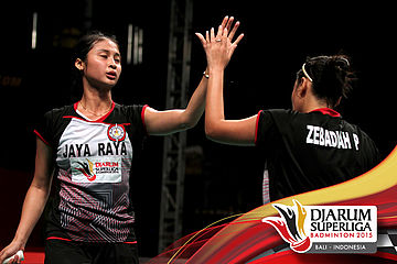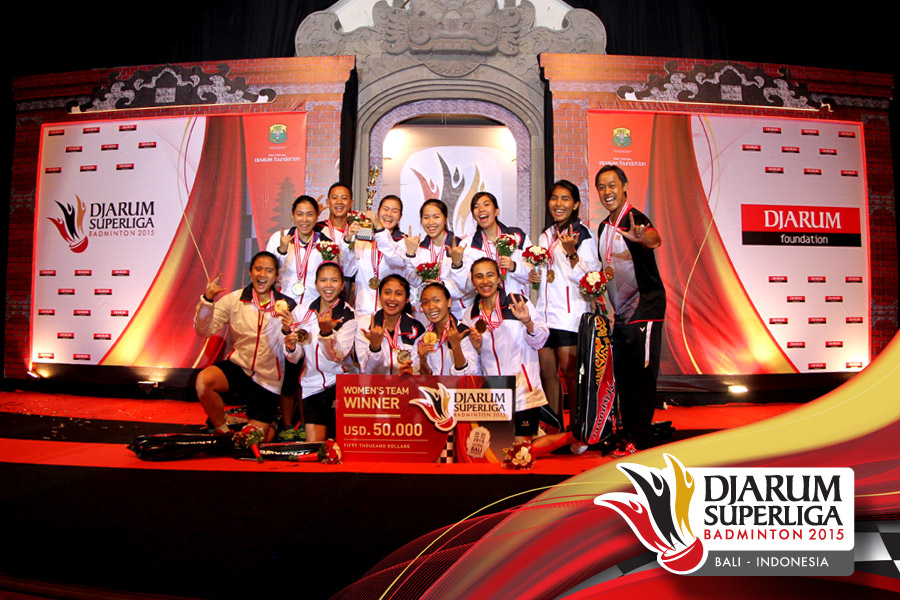 Juara putri Djarum Superliga 2015, Jaya Raya berpose bersama.
