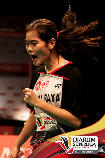 Ekspresi Busanan Ongbumrungpan (Jaya Raya) saat kehilangan poin.