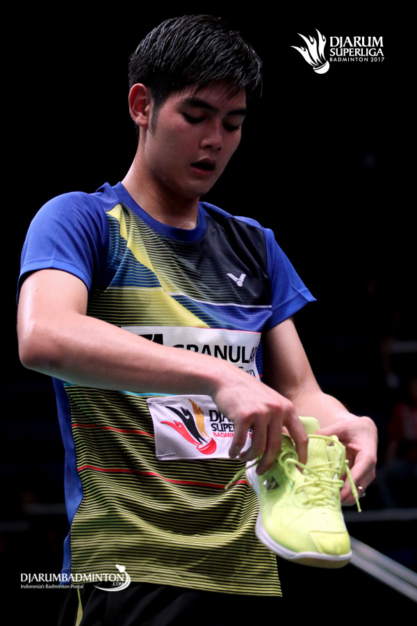 Pannawit Thongnuam (Granular Thailand) membetulkan sepatunya.