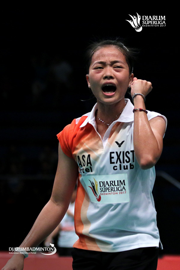 Ekspresi Fitriani (Tjakrindo Masters) saat berhasil mencuri poin.