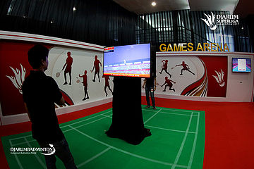 Suasana di booth Games Badminton Djarum Superliga Badminton 2017.