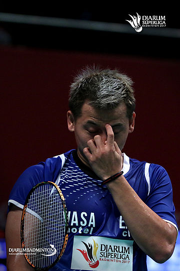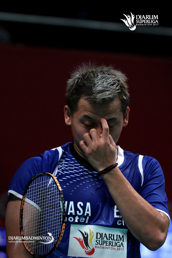 Ekspresi kekecewaan Riky Widianto (PB Tjakrindo Masters).