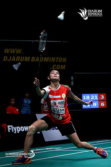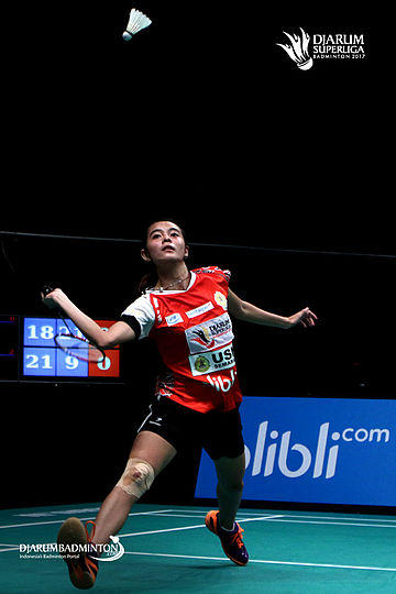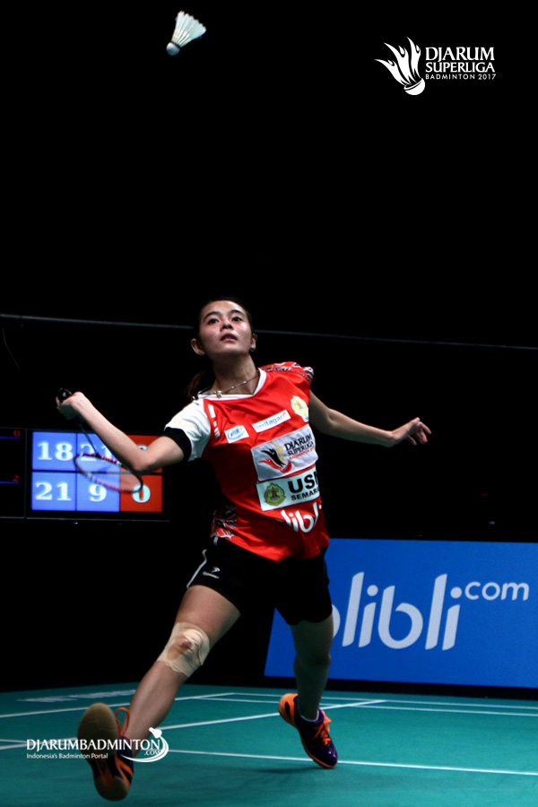 Silvi Wulandari (USM Blibli.com) mengembalikan shuttlecock.