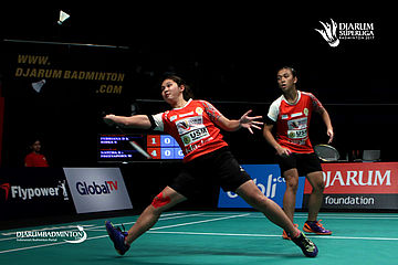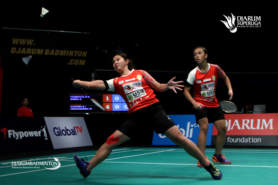 Febriana Dwipuji/Ribka Sugiarto (USM Blibli.com) bersiap menyambut pengembalian.