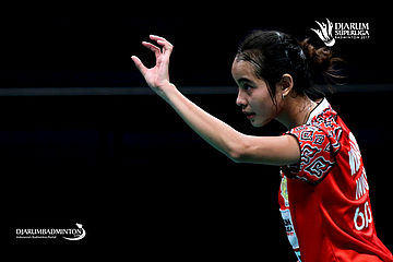 Silvi Wulandari (USM Blibli.com) meminta pergantian shuttlecock.