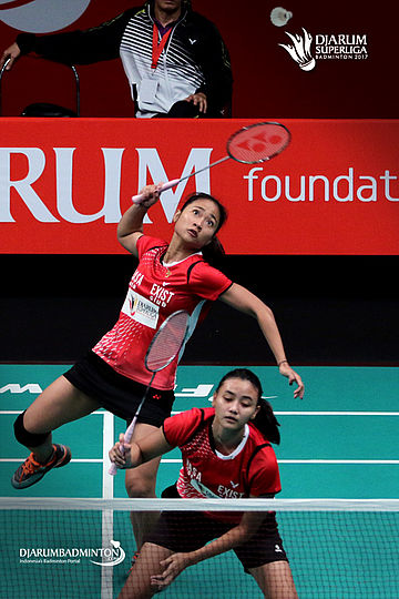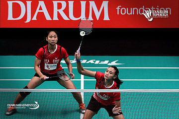 Meirisa Cindy/Ni Ketut Mahadewi (PB Tjakrindo Masters) bersiap melepaskan serangan.
