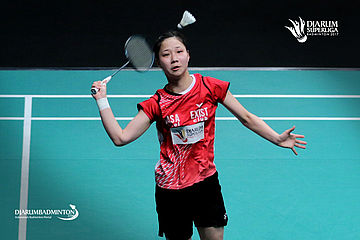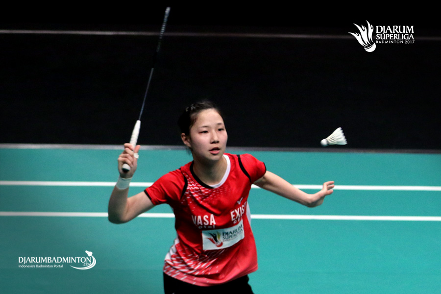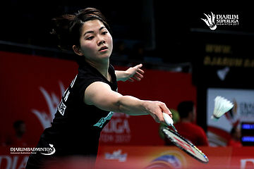 Son Wan Ho (PB Djarum) menghadang serangan.