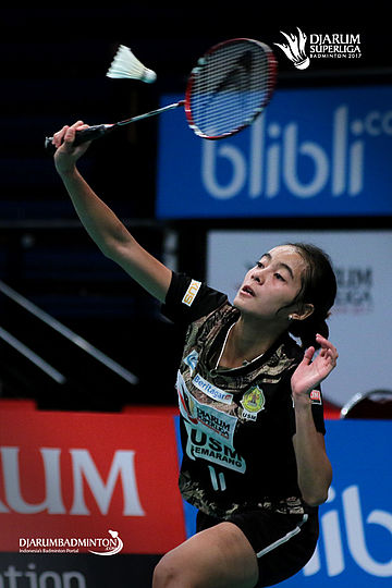 Silvi Wulandari (USM Blibli.com) menghadang serangan.