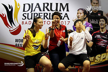 Zhang Beiwen, Yuni Kartika dan Yip Pui Yin berpose saat Meet and Greet.