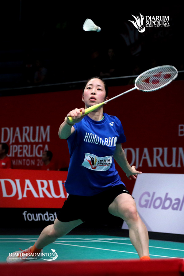 Kawakami Saena (Hokuto Bank Jepang) meminta pergantian shuttlecock.