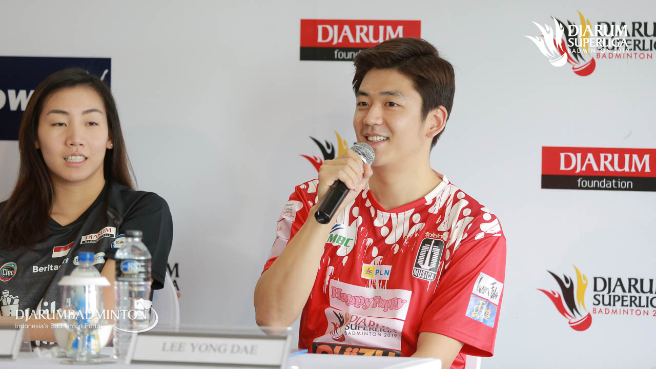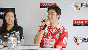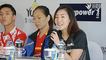 Michele Li (Djarum Kudus) menjawab pertanyaan wartawan