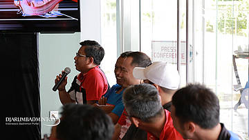 Fung Permadi (Team Manager Djarum Kudus) menjawab beberapa pertanyaan