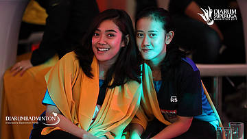 Maretha Dea Giovani dan Bunga Fitriani saat Gala Dinner Djarum Superliga Badminton 2019.