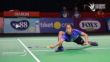 Desima Aqmar Syarafina (Tiket.com Champion Klaten) mengembalikan shuttecock