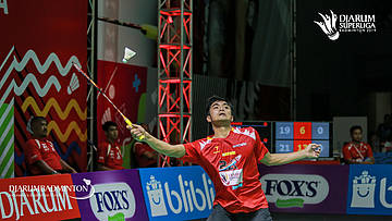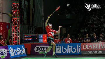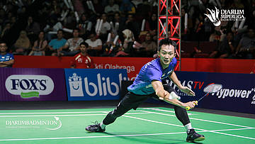 Ihsan Maulana MUSTOFA (DJARUM KUDUS) bersiap mengembalikan serangan