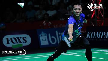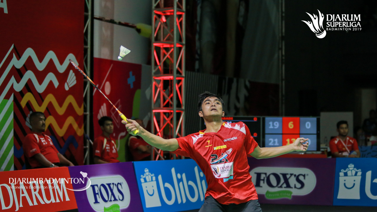 Ihsan Maulana Mustofa (Djarum Kudus) menahan serangan