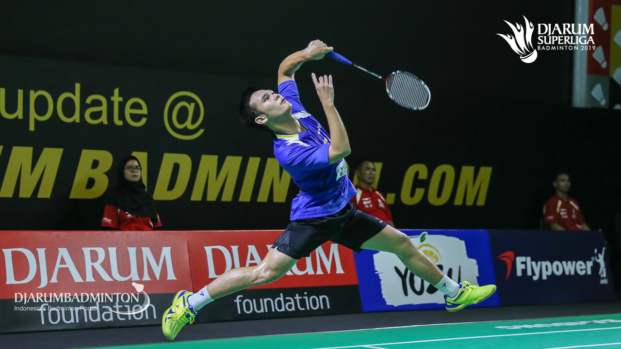 Tien Minh NGUYEN (JAYA RAYA JAKARTA) mengembalikan shuttlecoc