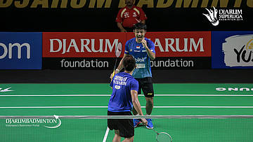 Akbar Bintang CAHYONO+Berry ANGRIAWAN (DJARUM KUDUS) menyambar pengembalian
