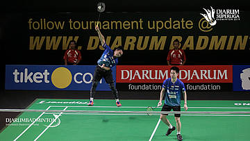 Kevin Sanjaya SUKAMULJO+Mohammad AHSAN (DJARUM KUDUS) gagal mengembalikan shuttlecock