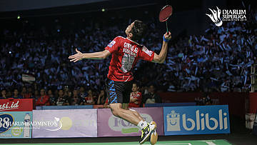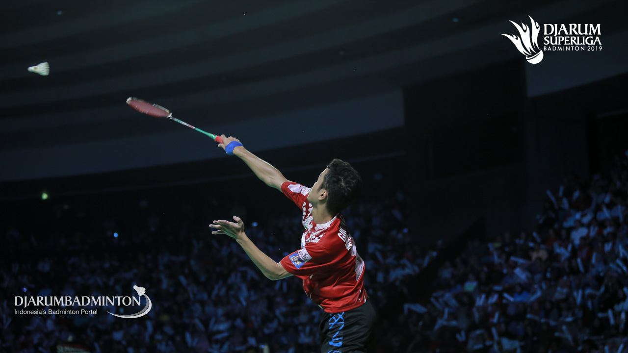 Anthony Sinisuka GINTING (MUSICA TRINITY) mengembalikan shuttlecock