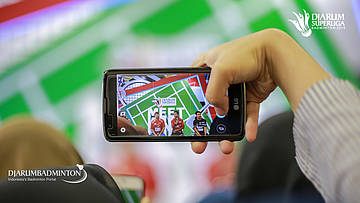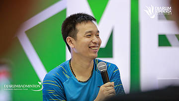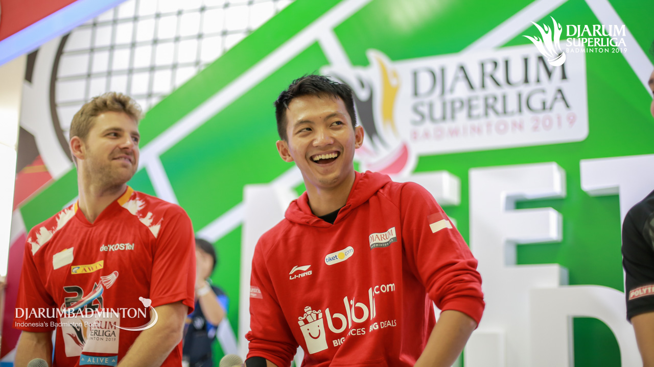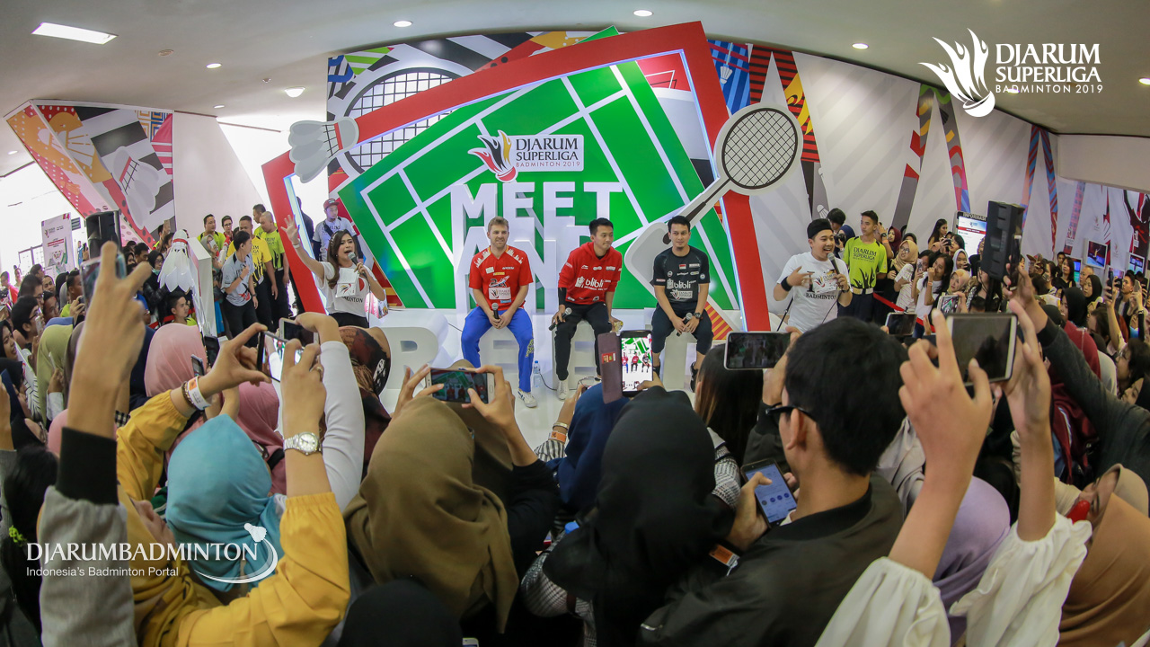 Suasana Meet and Greet Hendra SETIAWAN (JAYA RAYA JAKARTA), ZHANG Beiwen (BERKAT ABADI) dan Leo Rolly CARNANDO (DAIHATSU ASTEC)