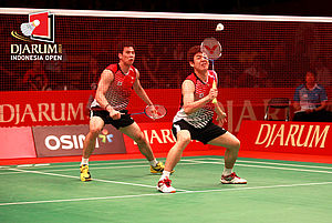 Angga Pratama/Rian Agung Saputro tersingkir dari arena Djarum Indonesia Open Super Series (DIOSSP) 2013. Pasangan itu kandas ditangan ganda China Taipei Lee Shen Mu/Tsai Chia Sin di ronde 1.
