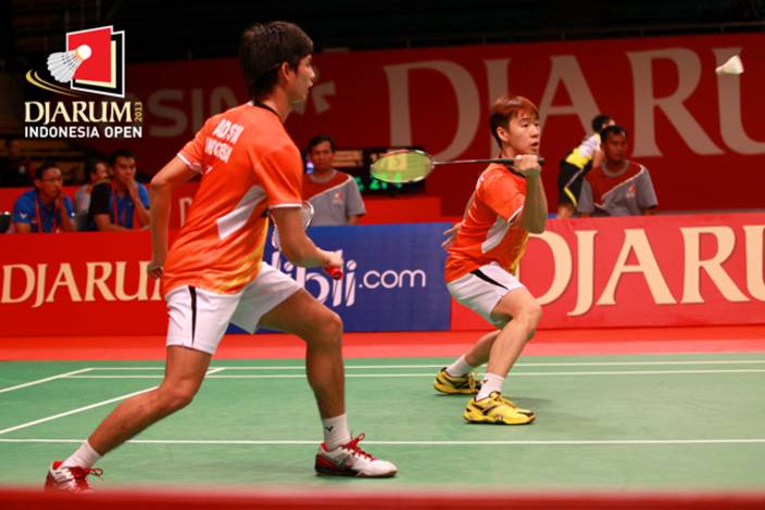 Andrei Adistia/Markus Fernaldi Gideon bekuk peringkat 7 dunia di Djarum Indonesia Open Super Series (DIOSSP) 2013. Hoon Thin How/Tan Wee Kiong asal Malaysia dikalahkan dalam drama tiga set yang berakhir dengan skor 10-21, 21-18 dan 21-15.