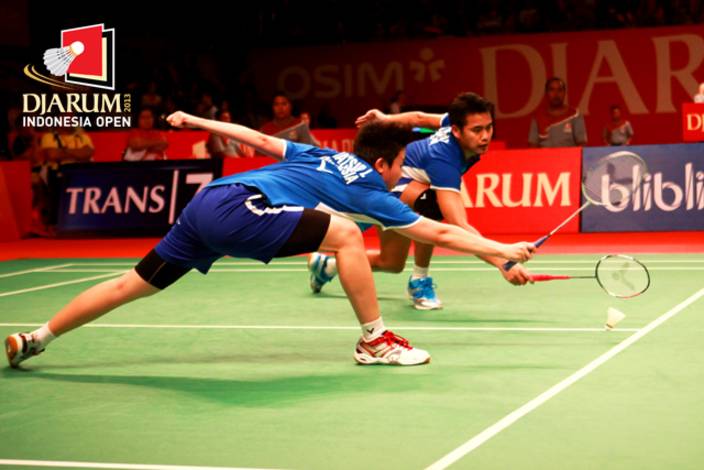 Misi Tontowi/Liliyana untuk menjadi juara di kandang sendiri kandas usai takluk dua game langsung, 21-15 dan 21-14 di semifinal Djarum Indonesia Open Super Series Premier (DIOSSP) 2013, Sabtu, (15/6).