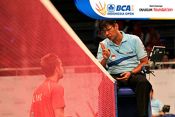 Christian Lind Thomsen (Denmark) saat diberikan peringatan oleh Empire