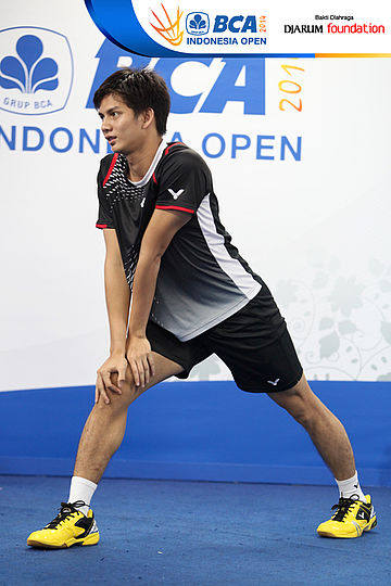 Tommy Sugiarto (Indonesia) sedang melakukan pemanasan sebelum bertanding