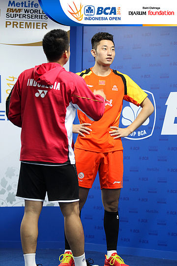 Hendra Aprida Gunawan (Indonesia) sedang berbincang dengan chai biao (China)
