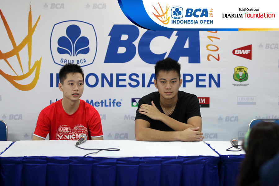 Kevin Sanjaya/Selvanus Geh (Indonesia) saat konfrensi pers