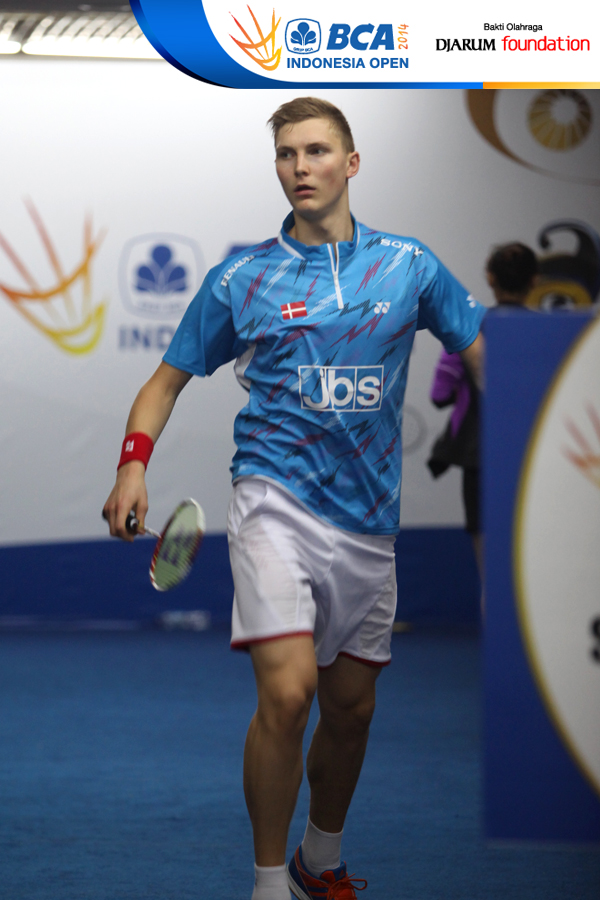 Victor Axelsen (Denmark) saat melakukan pemanasan sebelum bertanding
