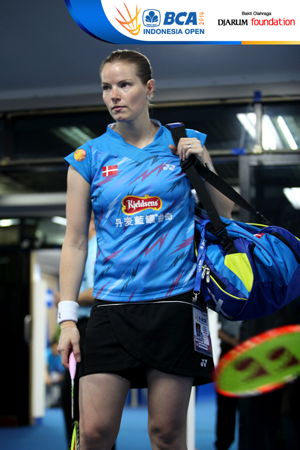 Christinna Pedersen (Denmark) bersiap memasuki arena pertandingan