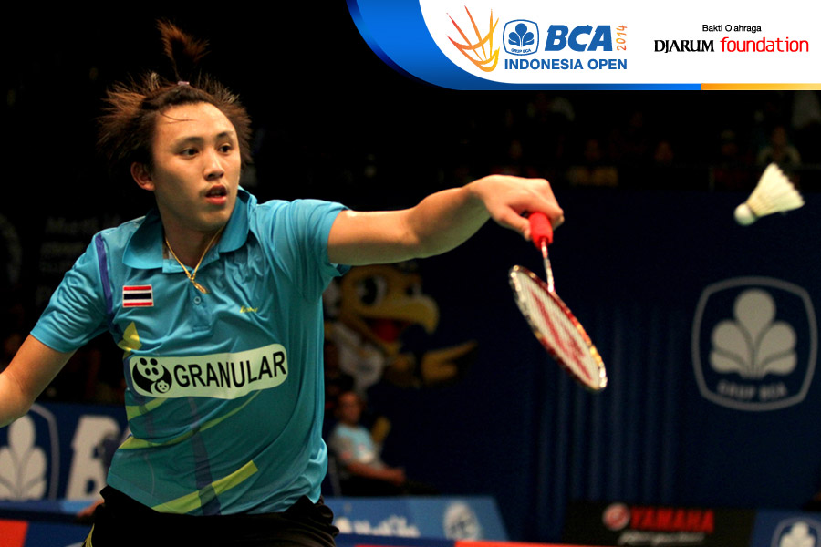 Tanongsak Saensomboonsuk (Thailand) bersiap menyambut pengembalian dari Chen Long (China)