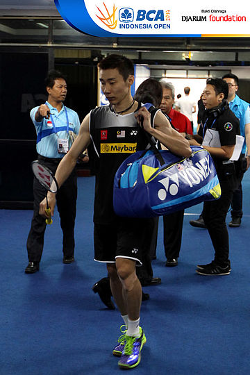 Lee Chong Wei (Malaysia) bersiap memasuki lapangan pertandingan