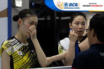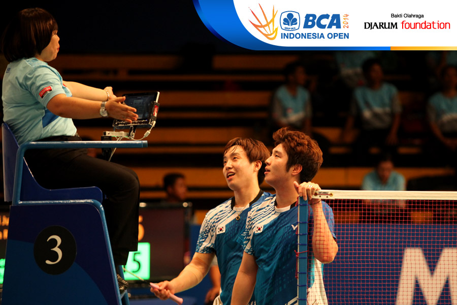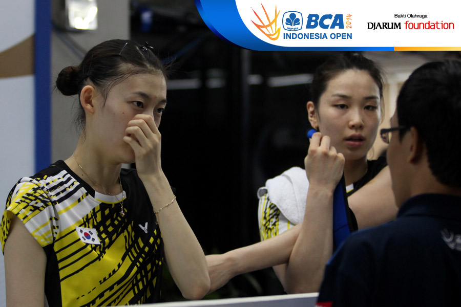 Kim Ki Jung/Kim Sa Ra (Korea) Melakukan protes kepada umpire
