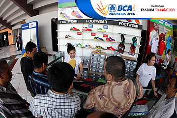 Suasana booth Yonex pada gelaran BCA Indonesia Open Super Series Premier