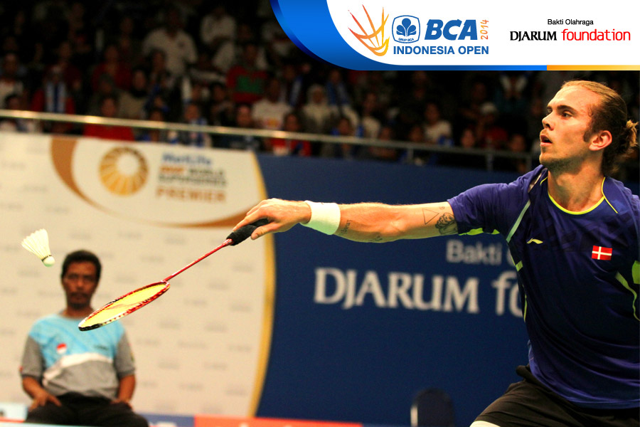 Jan O Jorgensen (Denmark) menyambut pengembalian dari Saon Wan Ho (Korea Selatan)
