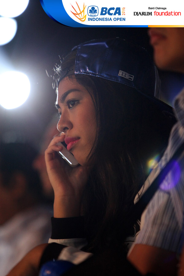 Audrey saat menghibur ribuan penonton pada gelaran BCA Indonesia Open Super Series Premier 2014