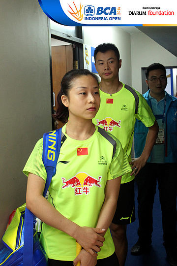 Xu Chen/Ma Jin (China) bersiap memasuki lapangan pertandingan